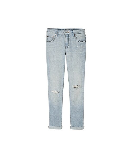 >ミシン縫い対象商品(シングルステッチ仕上げ) ダメージ加工商品は股下補正後、裾部分はダメージ加工ではなくなります。予めご了承ください。 ■ バリエーション豊富なベルトはこちら。 ※店舗とは販売日が異なることがあります。 ※29・30・32・34・36サイズは、オンラインストアのみでの取扱いとなります。 ※29・30・34・36サイズは、ご好評につき完売しました。 素材 73% 綿,26% 指定外繊維(リヨセル),1% ポリウレタン 仕様 ウエスト:前ボタン留め・ファスナー開き・ベルトループあり,ポケット:前×2(左右・右はコインポケット付)・後ろ×2(左右) 取扱い 洗濯機・ネット使用 この商品は染めの特性上、摩擦により他の衣類等に色が移ります。淡色のもの(ソファー、靴、バッグ、車のシートなど)との組み合わせはお避け下さい。お洗濯の際は単品洗いをして下さい。 限定取扱 こちらの商品は、一部店舗でのみの、お取り扱いとなります。 ダメージ加工デニム ダメージ加工デニム こちらの商品はユーズドジーンズのような風合いを表現する為にダメージ加工や製品洗いをしています。ダメージ加工はデニムの生地を傷めるため、通常のジーンズよりも耐久性が落ちます。また、脱ぎ履きの際に足にひっかかり、ダメージの穴を余計に大きくしてしまいますので、ご注意ください。 着用時にネイル、ベルト、バッグ、アクセサリー、ベンチや家具、周囲の壁などの表面の粗い物との摩擦にご注意ください。また、何かに座ったり、もたれたりする際には、接触するものとの摩擦にご注意ください。 着用や洗濯により、加工部分のほつれが助長される事がありますのでご注意下さい。 糸の飛び出し、糸切れ、生地切れ、色むらがありますが、これらは製品の特徴です。ダメージ加工の特徴により一枚、一枚が微妙に異なります。