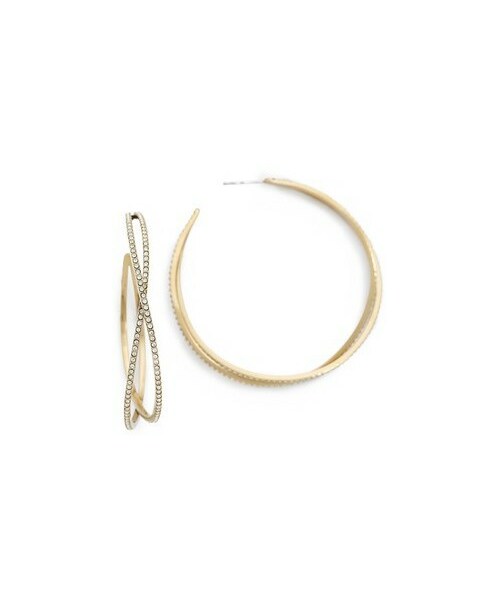 Crystals shine from the crossover hoops of these gold-tone Michael Kors earrings. Post closure. Imported, China. Measurements Diameter: 2in / 5cm