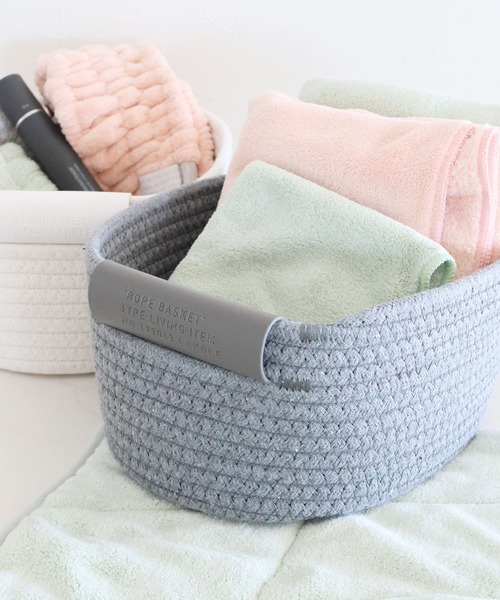 コットンロープを重ね合わせて作られた、オーバル型の収納バスケット。 やわらかい素材なので、収納物や床を傷付けにくくなっています。 取っ手のフェイクレザータグはボタンで取り外しが可能。 Mサイズは、リモコンなどリビングの細々したものや下着などの収納にもおすすめ。 ▼同シリーズのLサイズはこちらブランド品番:234944 ZOZO商品コード:89959772