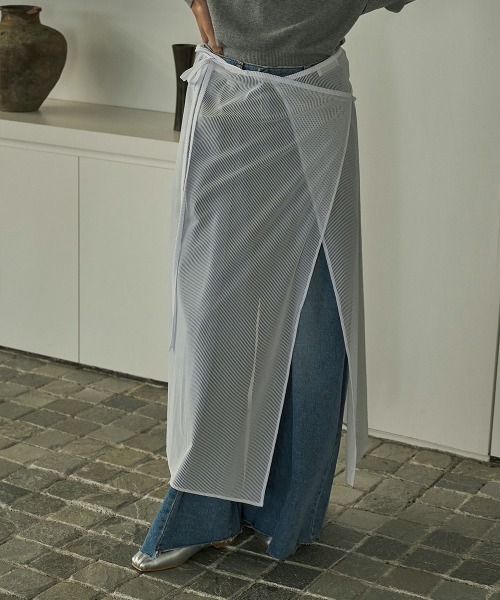 ニットやスウェットにパンツ、スカート、そんなベーシックなスタイルにほんの少し癖を加えられるアイテムです。 ストライプでシアー。抜け感のある素材のラップスカート。 巻きで作るスカートなのでサイズ調節やウエスト調節もお好みに調整できます。 裾に向かって開くので歩きにくさや動きにくさもなく軽い着心地。 コートやジャケットスタイルから覗かせても可愛いんです。 重さのある冬のアイテムにシアーな素材で軽さとニュアンスを与えてくれますよ。 [着用時期]オールシーズン [透け感]あり※インナー必須 [生地の厚み]かなり薄手 [ストレッチ]なし [生地のやわらかさ]シャリ感 [生地の特徴]シワ加工 [落ち感]なし(ふんわりしたシルエット) [着用ジワ]袖や座った時のナチュラルなシワ/なりにくい [身長]全ての方に(身長によって着丈が変わります) ※感じ方には個人差がございますので気になる部分がありましたらお気軽にお問い合わせください