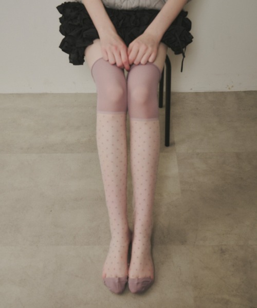 【シアードットハイソックス by J1U by LA BELLE ETUDE】取り入れるだけで旬なスタイリングにアップデートしてくれるシアー感たっぷりなハイソックス。シアーな生地をベースに、立体感のあるドットを施した上品なデザイン。やや長めなハイソックスなので、伸ばして履いたり、くしゅっとさせたりお好みで着用可能◎上部に無地の生地をドッキングすることで足元にメリハリができ、気になるふくらはぎ部分をしっかりカバーしてくれます。※モデル着用画像につきましては、光の反射によって実物と色味が異なって見える場合がございます。(トルソー画像が実物に1番近い色みです)♡---------------------------------------------------------------♡J1U by LA BELLE ETUDE / ジユウ バイ ラベルエチュード" 自由 " にfashionを楽しみ、なりたい自分を表現。 自分の為のファッション。"好き・かわいい"が自信と成⻑につながることを願って。2023年6月にLA BELLE ETUDEから”moden sweet"を引き継ぎ表現する姉妹ブランドとしてリブランディング。♡---------------------------------------------------------------♡♡商品のお気に入り登録再入荷・在庫1点やセールなどの通知を受け取ることができます。お気に入り登録された方だけの特別なセール通知が来ることも...!♡ブランドのお気に入り登録新商品や再入荷など、ブランドのお得な情報がいち早く届きます。