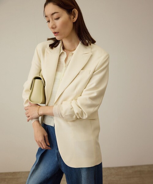 【デザイン・シルエット】 ビッグショルダーがモダンな雰囲気で、クラシカルなピークドラペルと襟の高さがメンズライクなシングルジャケット。日本生産の仕立ての良さが際立つジャケットで、素材も最高峰、長年愛用できるクオリティに仕上がっています。 【おすすめのスタイリング】 シアーなスカート合わせで、軽さのある春らしい雰囲気で着用いただけます。 【素材】 シルク混のウール素材で、シルクの持つ光沢感と発色の良さが特徴。柔らかく軽めのウエイトなので、着用しやすく通年着用可能。 ---------------------------- 透け感:なし 裏地:あり 伸縮性:なし 光沢感:なし 生地の厚さ:中肉 ポケット:あり 開き方:ボタン ---------------------------- 【モデル情報】 モデル身長:166cm 着用サイズ:38 【IM ROPE'】 「ROPE'」は1968年から、いつの時代も“エレガンス”な女性像を描いてきました。 2025年SPRING COLLECTIONでは、ブランドのシグネチャーアイテムとして 愛され続けている「トレンチコート」「ジャケット」「バッグ」「パンプス」を発売します。 ※画像の商品はサンプルです。実際の商品と仕様、加工、サイズが異なる場合がございます。 ※撮影場所やライティング、お使いのモニター環境によって色の見え方が異なる場合がございます。 ※商品のカラーは画像の色味をご参照ください。動画は仕様説明のため、色味が実物と異なる場合がございます。