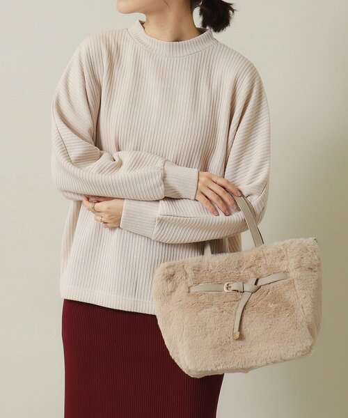 【デザイン】 フロントのベルト飾りがポイントのフェイクファートート。 内側サイドのスナップベロを留めると、コンパクトな台形サイズにシルエットが変わる2wayデザインです◎ アイボリー、ベージュには程よい毛足の滑らかなフェイクファーを、グレーには毛足の長いラメ入りフェイクファーを使用。 冬のおでかけコーデのアクセントにぴったりなふわふわバッグ♪ ギフトアイテムとしてもオススメです。 【機能性】 中身が安心な天マグ仕様。 付属のストラップを合わせてショルダータイプとしても使える2wayデザイン。 ※ポケット数×3 ※照明の関係により、実際よりも色味が違って見える場合があります。また、パソコン・スマートフォンなどの環境により、若干製品と画像のカラーが異なる場合もございます。 店舗へのお問い合わせ商品番号:P93-79096 ●製品寸法: 00(フリーサイズ):高さ23cm 幅(上部)33cm 幅(下部)23cm マチ13cm 持ち手上がり14cm 付属ショルダー対応サイズ62~118cm 備考:重量:約390g