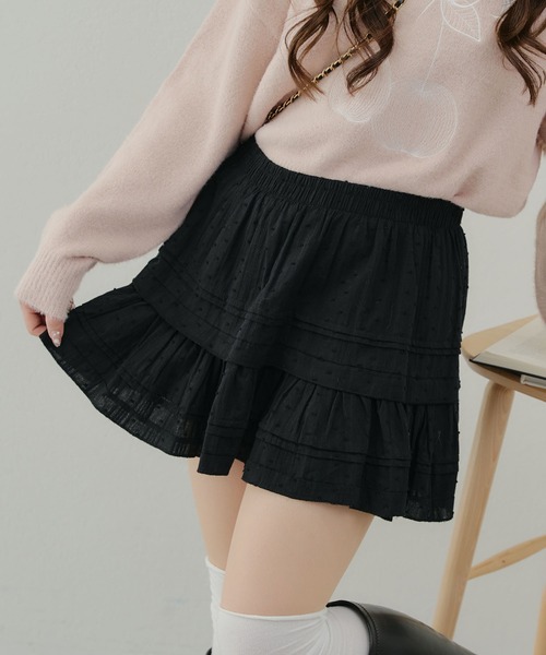 【APPORTE PAR LES MARCHES】 ■Point ・レースとフリルのティアードがボリューム感のあるシルエットなデザインに。 ・ウエストゴムのなので着脱しやすいアイテムです。 ■Styling ・春アウターとして大活躍する合皮ブルゾン(品番:0851070050)と相性◎ ・オーバーなスウェットと合わせてもトレンド感のあるコーデに。 ========================= 洗濯方法:手洗い 透け感:なし 裏地:あり 伸縮性:ウエストにゴムあり ========================= -INFORMATION- ◆商品のお気に入り登録 ・完売していても再入荷時に再入荷通知を受け取ることができますので、是非ご登録ください♪ ◆ブランドのお気に入り登録 ・新商品や再入荷などの情報を受け取ることができますので、是非ご登録ください♪ ※屋外の光や照明の当たり具合で、実際の商品の色味とカラー別画像の色味に違いが発生する場合がございます。 商品の色味はスタジオ撮影の詳細画像にてご確認ください。 ※ご注文いただいた予約商品のお届け時期の確認は、注文履歴ページより行えます。 ◆返品・キャンセルについて ・着用・洗濯後の返品・ご交換は致しかねます。 ・商品到着後、着用前に商品を確認して頂きますようお願い致します。