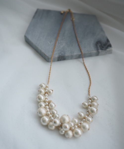 ランダムなコットンパールとビジューを使用したラメコットンパールネックレス コットンパールはツヤのあるタイプとラメの施されたタイプの2種類が使用されており きらりと輝くビジューがさらに高級感のある華やかな印象を与えます。 ※商品画像は、光の当たり具合やパソコンなどの閲覧環境により、実際の色味と異なって見える場合がございます。予めご了承ください。 ◼オススメシーン◼ 結婚式・2次会(二次会)・1.5次会・披露宴・お呼ばれ・成人式・同窓会・謝恩会・パーティー・演奏会・食事会まで、多様なシーンのコーディネートにご使用いただけます。 ◼商品のお気に入り登録 ◼ 完売カラーの再入荷通知や、ラスト1点の通知、セールの通知も受け取ることができます。 気になるアイテムは《お気に入り登録》が絶対オススメ! ◼ブランド紹介◼ Dress Shop " Dorry Doll"(ドリードール) 結婚式やパーティーなどのフォーマルシーンはもちろん、発表会、謝恩会、入学式や卒業式などのセレモニーシーン、そして女子会や食事会などのカジュアルシーンなど、多様なシーンにご使用いただけるドレススタイルをご提案させていただいております。 また、トータルコーディネートがきるよう、羽織や、パーティーバッグ、パーティーシューズ、アクセサリーなども豊富に揃えております。