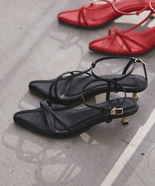 【デザイン・シルエット】 ナローラインで女性らしくも、底を厚めにすることで見た目も着用時も安定したバランスの仕上がりです。 足首までストラップがあることで夏のお仕事シーンの一足としてもおすすめ。 <POINT> ・ストラップが一本斜めに入ることで足なりのラインが生まれ、足を女性らしくも綺麗に見せてくれます。 ・ヒールはメタルポイントで後ろ姿まで女性らしい印象◎ ・目の詰まったクッションを採用し、しっかりとしたクッション感とヘタレにくい仕上がり。 ・ワントーンでおしゃれな印象。 【素材】 足に馴染みやすい程良いツヤ感と表面感の生地を採用しました。 【カラー】 ベーシックに使える万能なブラックとデニム合わせにも映えるサマーレッドの2色展開。 【おすすめのスタイリング】 デニムやワイドパンツと合わせて頂くのがおすすめです。 ※一部の箱に配送の際についてしまった、へこみなどがある場合がございますが、商品に問題はございません。