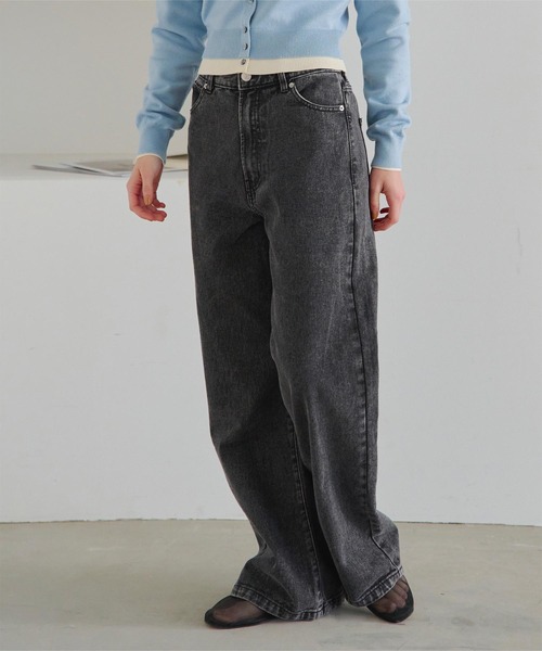 美脚シルエットと快適さを兼ね備えた、頼れる定番デニム。■Point・美脚見えを叶えるシルエット:程よく広がるセミワイドシルエットが脚のラインをすっきりカバー。・脚長効果バツグンのハイウエスト:ウエスト位置を高めに設定し、スタイルアップも◎・シーズンレスで活躍:厚すぎず薄すぎない素材感で、春夏秋冬オールシーズン着用可能。・どんなトップスとも好相性:Tシャツからブラウスまで、幅広いスタイリングにマッチ。■Coordination・コンパクトトップスでメリハリを:クロップド丈のトップスと合わせて脚長バランスを強調。・シャツインでキレイめカジュアル:ブラウスやシャツをタックインして、大人の洗練スタイルに。・スウェットやニットで抜け感を:ラフなトップスと合わせればこなれたオフスタイルにも◎定番だからこそシルエットにこだわった1本。デイリー使いにぴったりのセミワイドデニムです。※当商品は機械による生産の過程上、どうしても"生地を織る際の糸の継ぎ目"や多少の"ほつれ"、他繊維の"混紡"、また、形やサイズや柄に多少の"誤差"が生じる場合がございます。※サイズは、実寸サイズを測っているため多少誤差がでる場合があります。製造工程の関係上、各採寸箇所実寸(平置き)より【約-3cm~+3cm】程度は誤差の許容範囲とさせて頂いておりますので、予めご了承くださいませ。※メーカーより密封状態で入庫し、検品時に再度袋詰めを行っておりますが、素材により染料等の臭いが強い場合がございます。※発送上の状態によって商品がシワになる場合がございます。※商品により色落ち・色移りがある場合がございますので、品質表示をご確認の上、お取り扱いにご注意くださいませ。【伸縮性】バックウエストにあり【透け感】なし