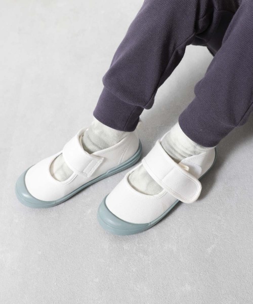 Instagramで募集した""上履き""に関するたくさんのお悩みのうち、特に多かった「サイズ調整が難しい!」というお声をもとに生まれた、どんな足にもフィットするサイズ調整がしやすい上履き。 肌当たりの良いベルトで、甲の高さや足幅に合わせて調整し、ぴったりサイズで履くことができます。 インソールにもこだわりいっぱい。 ・汚れが目立ちにくいカラー ・サイズの買い替え時期がわかるサイン付き ・左右を間違えにくいデザイン ■スタイリング カラーソックスや柄ソックスを合わせることで、よりかわいい足元が完成。 好きなカラーの上履きとお気に入りの靴下を合わせれば、毎日の通園・通学がもっと楽しくなること間違いなし。 ■ご注意事項 ・ブラシで洗う際は、傷がつかないか十分に確認の上ご使用いただき、シューズ用シャンプー等を使用する場合は、十分にすすぎを行ってください。 ・商品の劣化の原因となるため、つけ置き洗いは避けてください。 ・洗った後や雨などで濡れた場合は、乾いた布で水分をよく拭き取り、形を整え、風通しの良い日陰で乾燥させてください。 ・洗濯機による洗い・脱水や、タンブル乾燥などは、商品および機械の破損につながる恐れがあるため、お控えください。 ・表面が白くなる現象(ブルーミング)は、ゴム成分が劣化から守るために自ら表面に油膜を張ることにより起きます。ゴム製品の特性で、仕様上問題はございません。 ・生産過程上、表面にすり傷、汚れなどが生じることがございます。 ・生産時期により、多少色味が異なる場合がございますが、素材・サイズ等の品質に違いはございません。 ー devirockについて ー 子育てがもっと楽しくなる社会を目指し、親と子が感じる課題を解決する""新しいあたり前""を提案しています。 男の子・女の子のデイリーウェアを中心にラインナップ。ベーシックからトレンドまで幅広いデザインと、ベビーからキッズまでの豊富なサイズ展開が魅力の子供服ブランドです。