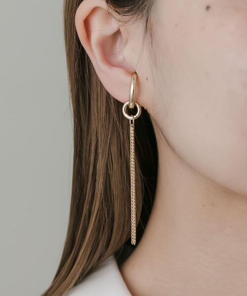 このアイテムはWEBと一部店舗での取り扱いです。 【ロングシルエットで品のある佇まい】 ●パーツの付け外しが叶う2WAYデザイン ●落ち感のある縦長シルエットで小顔効果を発揮 ●ノンホールの方やイヤリングが苦手な方にもオススメ 肌なじみの良いゴールドメタルで仕立てたロングチェーンデザインのイヤーカフ。 両耳着用可能な2セットなので、イヤリングやピアス感覚での着用が叶います。 ロングチェーンは付け外しが可能なので、スタイリングや気分に合わせてシンプルなフープタイプのイヤーカフのみでの着用も叶います◎ 【2025 Spring/Summer】【25SS】 ※メッキ製品(特に銀メッキ)は変色しやすいため、こまめなお手入れで防止してください。長期放置やスプレー香料などの同時使用は、特にお避けください。 ※メッキ製品は、アレルギー体質の方や体調が低下している方など、かぶれることがあります。肌に異常を感じた時はご使用をお止めいただき専門医にご相談ください。 ※アクセサリーは壊れやすいものです。取り扱いに注意していただき大切にご使用いただけるようお願い申し上げます。 重量(片耳) : 約4g ※商品画像は、光の当たり具合やパソコンなどの閲覧環境により、実際の色味と異なって見える場合がございます。予めご了承ください。 ※商品の色味の目安は、商品単体の画像をご参照ください。 ▼お気に入り登録のおすすめ▼ お気に入り登録商品は、マイページにて現在の価格情報や在庫状況の確認が可能です。 お買い物リストの管理に是非ご利用ください。 -