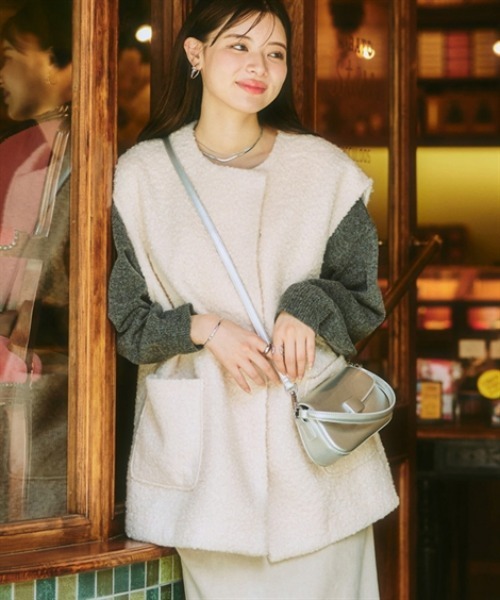 【Be praised】ーーー明日ちょっと褒められる服ーーー 「ふわふわもこもこが可愛い?着回し抜群のブークレーリングベスト」 サラッと一枚レイヤードするだけでスタイリングを格上げし、やわらかく軽い着心地はお出かけ着からデイリー使いにピッタリ ■デザイン ・首元をスッキリと見せるリングネックデザインでタートルネックやビッグカラーのトップスとも好相性 ・ボリューム感がありながらも軽量で重さのストレスがなくリラックス感のある着心地。 ・フロントファスナーで脱ぎ着も楽にできるのも嬉しいポイント ・ゆったりとしたシルエットで体型カバーも狙えます。 ■素材 肌触りが良く、暖かなブークレーリング素材を使用 ボリューム感がありながらも軽量で重さのストレスがなくリラックス感のある着心地の素材です。 ■おすすめのスタイリング ブラウスやシャツと合わせて、きれいめカジュアルスタイルに タートルネックニットと合わせて、温かくて可愛い冬コーデに ワンピースの上から羽織って、今年らしいレイヤードスタイルに デニムやチノパンと合わせて、カジュアルだけど大人っぽい着こなしに スカートと合わせて、フェミニンなスタイルに **どんなシーンにも合わせやすいから、一着持っていると着回し抜群です!** ぜひ、ワードローブに加えてみてくださいね ●スタッフ着用コメント 身長159cm/ややぽっちゃり/普段のサイズトップスMボトムL/着用サイズM スナップボタンを閉めて「きちんと見え」狙いで着るのが好みでした。ゆったりとしたシルエットで体型をうまくカバーしてくれます。 <仕様> ポリエステル100%(カットソー) 透け感:透けにくい 伸縮性:ややあり 生地の厚み:厚い 光沢感:なし 裏地:なし ポケット:あり ※前2 季節:秋・冬 シルエット:ゆったり <洗濯方法> 手洗い ■キーワード 20代、30代、40代、50代、60代、お出かけ、お洒落、かわいい、きれカジ、たいけいかばー、ゆったり、アラサー、アラフォー、オフィスカジュアル、カワイイ、シンプル、トップス、トレンド、ファッション、プラスサイズ、ベスト、ラージサイズ、レディース、冬、大人女子、日常使い、日常着、普段着、毎日、にっせん、nissen、ニッセン