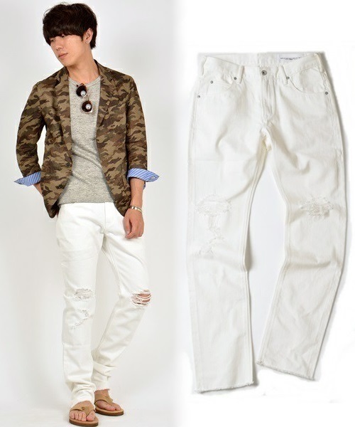 SHIPS JET BLUEのオリジナルパンツ JET BLUE定番のJEGシリーズよりトレンドのダメージデニムが登場! スキニーシルエットのシャープなラインとクリーンなホワイトカラー、 また絶妙なダメージ加工が雰囲気を醸し出します。 さらに裾はカットオフ仕様と細部まで拘りを見せた珠玉の一本です。 ※ダメージ加工製品 こちらの製品は意図的に穴をあけるなどのダメージ加工を施しております。 引っ掛けると穴が広がりますので、着用や洗濯の際はお気をつけ下さい。 また、加工の程度がサンプルと多少異なる場合がございますので、ご了承下さいませ。 SHIPS各店へは下記品番にてお問い合わせ下さい。 123-12-0036