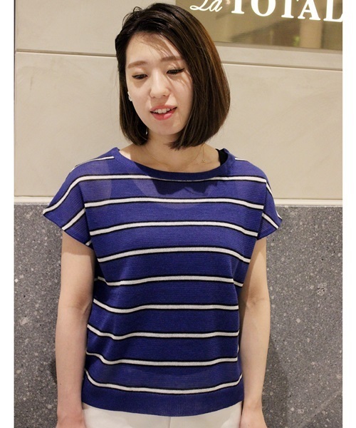 麻混の涼しげなサマーニット。透かし柄なので、見た目にもとてもさわやかな一枚。ボーダーとリネンの組み合わせが、カジュアルなテイストにもきちんとはまり、毎日の着回しの幅を広げてくれます。オンオフお使いいただけるので、ジャケットにパンプス合わせ、ニット一枚にカジュアルなボトムやシューズなど、マルチで着回せます。鎖骨がきれいに見えるネック周りも◎。 ※店頭・外での撮影画像は、光の当たり具合で色味が違って見える場合があります。商品の色味は、スタジオ撮影の画像をご参照ください。 スタッフ身長:155cm