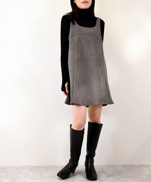 スウェードタッチカットソーの素材感が魅力のAラインミニワンピース! これ一枚で今季らしいこなれ感を演出します。 大人女子の可愛さを引き立たせるマストアイテムです。