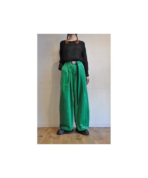 発色の良いコーデユロイ生地のパンツ。 フロントにタックが入ったワイドシルエット。 ウェストはゴム仕様で付属のガチャベルトでサイズ調節可能です。 前はファスナー開閉仕様になっています。 軽く柔らかい生地で穿き心地も抜群です。 色違いにブルーあり。 ●商品一覧トップページはこちら↓ https://x.gd/1fnk6