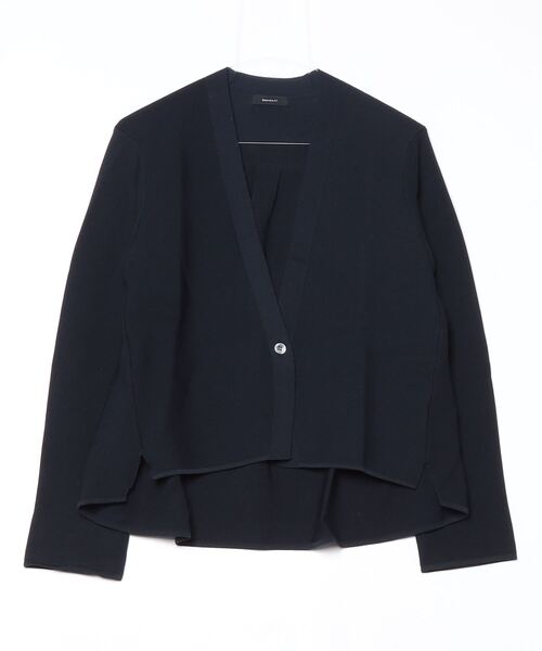 《デザイン》 緩やかにラウンドした後ろ裾ラインが女性らしい華やかなシルエットのニットショートジャケットです。 ガーター編みを使用していますが、前身頃は四本取りでしっかりした編地にしています。 後ろ身頃と袖は三本取りでしなやかな編地にしています。 同じ糸・編地でも工夫をしています。 ガーター編みは、表編み、裏編みを繰り返し編む編み方で、肉厚な編地が特徴です。 ゆったり身幅ですが 、前身頃はボクシーに仕上げているので、きちんとした印象で着られます。 《素材》 アセテートブライトとナイロンを撚糸したストレッチ素材です。 アセテート繊維は 木材パルプから作られる 『半合成繊維』で、ポリエステル等に比べて より天然繊維に近い上質な素材です。 糸が特殊な形状をしていて、肌に当たる面積が少ない=ドライタッチで吸放湿性、 速乾性に優れています。 《セットアップ》 同素材のニットスカート(商品番号:72-30FG03-204)と合わせて、セットアップとしてお召しいただけます。 ※在庫がない場合もございますので、予めご了承くださいませ。 お手入れ:手洗い可