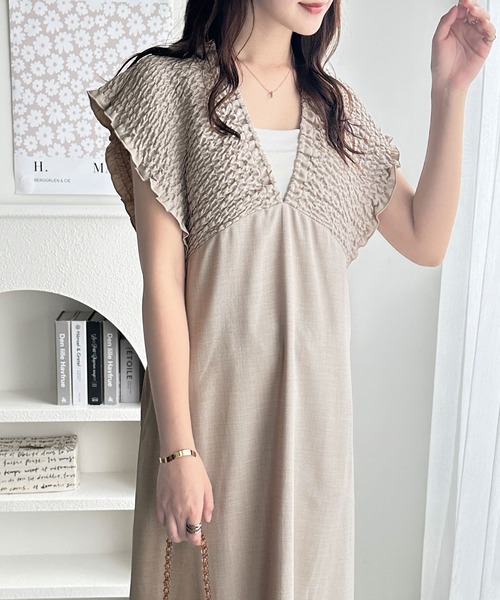 肩のシャーリングデザインがコーデのアクセントに! 前後2WAYで楽しめるトレンドのジャンスカ 〇肩のシャーリングデザインでオシャレ見え 〇前後2WAYで表情の違う着こなしが楽しめる 〇さらっとした麻調の合繊素材で高見え ■デザイン 肩まわりのシャーリングが特別感たっぷりのジャンパースカート。 前後2WAYなのでレースアップデザインをバックでもフロントでも楽しめます。 レースアップ部分はリボン結びにしても、垂らしても可愛い♪ インナーを選ばない着やすいデザイン感なので、幅広いテイストにマッチ! すとんとしたIラインシルエットなのでスタイルアップ効果も◎ 今シーズン1枚持っていると便利なおススメのアイテムです。 ■素材 サラッとした肌ざわりの麻調合繊素材 ロングシーズン活躍してくれる素材感が◎ …………………… 透け感:なし(淡色はややあり) 厚さ:普通 伸縮性:なし 裏地:なし 洗濯方法:洗濯機 …………………… ■コーディネート シアーインナーやタイトなカットソーを合わせた、シンプルモードでまとめるコーデがおススメ! バックのレースアップ×リボンデザインがコーデのアクセントに◎ レースアップをフロントにして紐を垂らすスタイリングもおススメです♪ 夏はブラトップやキャミソールを合わせてノースリーブワンピースとして着るのも可愛い。 合わせるアイテム次第で色々なコーデが楽しめる1着です。 *シャーリング部分幅(片側):21.6cm ●肩部分ゴムシャーリング仕様 ●ポケット有 ●裾スリット(後ろ約28cm) ●前後2WAY --------------------------------------------------------------------- ※サイズ寸法は実際の寸法と多少の誤差がある場合が ございます。 ※ご覧いただいているPC/WEB環境や撮影環境により、 多少色味が異なって見える場合がございます。 【お買い物をよりお楽しみいただく為に】 ▼商品のお気に入り登録をおすすめします♪ 『♡をクリック!』 完売カラーの再入荷やラスト1点の追加、 セールの際の通知を受ける事ができます。 ブランドのお気に入り登録もご一緒にお願い致します。 ---------------------------------------------------------------------