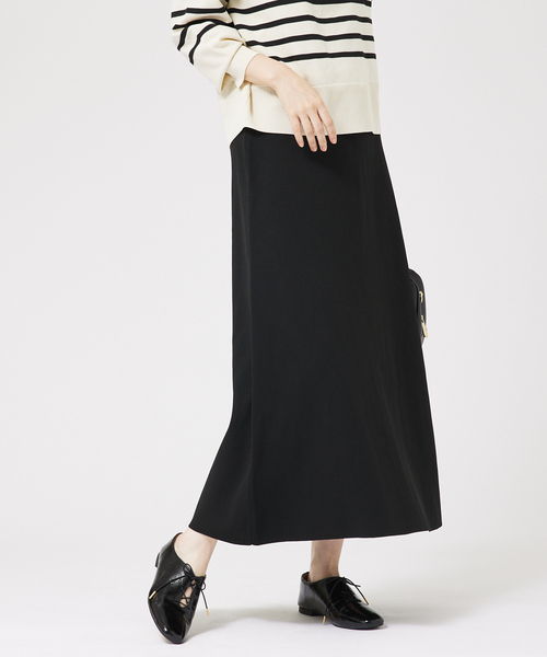 ヘビロテ決定のシンプルスカート【Design】シンプルなAラインのニットスカート。ニットならではの履き心地のよさが◎後ろスリット入りで女性らしさもありながら、タイトスカートが苦手な方にもトライしやすいデザインです。上品見えする素材なので、ON・OFF幅広いコーデに活躍します。【Fabric】軽くて張り感があり適度な肉感のニット素材を使用。裏地なしですが透け感は気になりません。【Styling】同素材のボーダートップスとのセットアップがおすすめ。ショート丈のアウターを合わせればスタイルアップ効果抜群です。【セットアップ対象アイテム▼】“ボーダーニットプルオーバー”検索➡72509040572**********************透け感:なし裏地:なし伸縮性:あり光沢感:なし生地の厚さ:普通**********************