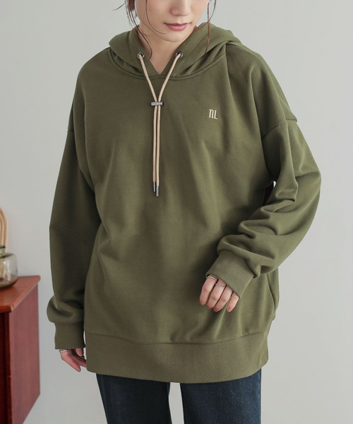 胸元のワンポイントロゴとストッパー付きのフード紐がアクセントになったパーカー。 柔らかな肌触りの裏毛スウェット。 程よい厚みで季節の変わり目にぴったりの生地感です。 ラフな印象に仕立ててくれる、ゆるっとしたシルエット。 スカートやパンツなど、幅広いスタイルに対応できる万能アイテムです。