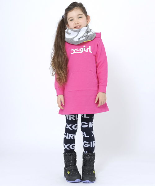ベーシックスウェットシリーズ。人気定番のフードスウェットドレスはレギンス&シープスキンブーツとのコーディネートがおすすめ!! 12M~3Tのみスナップボタン付き。 MODEL 117cm 5T着用