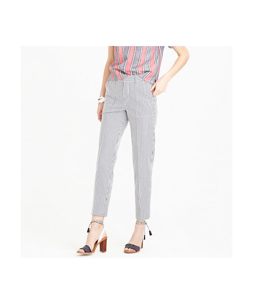 One of our favorite pantss of the season: an easy, summerweight trouser with a slim, slightly cropped leg. We made it in classsic seersucker, which might explain why you're suddenly craving a mint julep. Cotton. Machine wash. Import. Size & Fit Details size charts Sits just above hip. Fitted through hip and thigh, with a slim, cropped leg. 27" inseam.