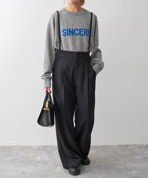 梳毛調のTR素材を使用した共生地サスペンダー付きのパンツ。セミワイドのシルエットにややハイウエストのウエストラインからタックを入れ、センタープレスも入っているのでスタイルUPの効果が期待できます。肩ひもは取り外し可能で、サイドの飾りベルトで多少のウエスト調整も可能に。ゴールドのバックルがアクセントとなったシーズンレスで着用可能なパンツです。※取り扱いについては、商品についている品質表示でご確認ください。※こちらの商品は、Spick & Spanでの取り扱いになります。 直接店舗へお問い合わせの際は Spick & Span店舗へお願い致します。※照明の関係により、実際よりも色味が違って見える場合があります。またパソコン・スマートフォンなどの環境により、若干製品と画像のカラーが異なる場合もございます。※商品の色味は、商品アップ画像をご参照ください。モデルサイズ:身長:167cm 着用サイズ:36本体:洗濯機洗い(弱)