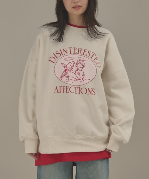 エンジェルモチーフのプリントデザインスウェット。■デザイン/素材ボディと馴染みの良いカラーでプリントしたエンジェルモチーフスウェット。絵画モチーフを線画に落とし込むことで、カジュアルな印象に。表側は綿タッチ、裏側は起毛になっているのでロングシーズン使えるアイテム。■スタイリング1枚ではもちろん、下にカットソーやシャツをレイヤードして奥行を出すのもおすすめ。ジャケットやコートなどのアウターを羽織ってもカジュアルで軽やかな印象に。……………………透け感 : なし厚さ:やや厚め伸縮性:なしお手入れ方法:手洗い可……………………※ご注意※・屋外の光や照明の当たり具合で、実際の商品の色味とカラー別画像の色味に若干の違いが発生する場合がございます。・詳細画像と併せてご確認の上、ご注文いただきますようお願い致します。【MERLOT】ジャンルレス、ジェンダーレスをテーマにヴィンテージライクからモダンなアイテムまで幅広く展開。 メンズとレディース、カジュアルとモード。あらゆる境界を取り払うミックススタイルを提案します。【商品のお気に入り登録】完売カラーの再入荷通知やラスト1点の通知、プライスダウンの通知を受け取ることが出来ます。【ブランドのお気に入り登録】新商品や再入荷など、嬉しい情報を受け取る事が出来ます。ぜひご登録ください◎