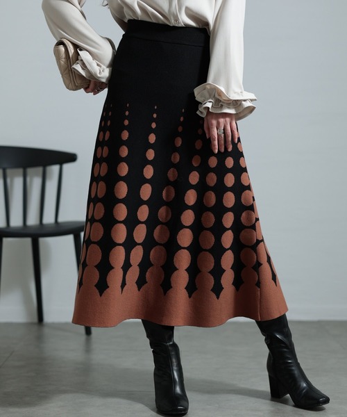 【アイテム】 泡がのぼってくる様なグラデーションの水玉模様がキャッチーなレトロ感を演出してくれるニットスカート。 ウエストには総ゴム仕様でリラクシーな穿き心地。着脱のしやすさも嬉しいポイント。ハイゲージのニットは保温性も高く、滑らかさが着心地を良くし、オフィスシーンにもマッチしやすいテクスチャーです。 上品なAラインを描くフレアなシルエットで大人っぽさを加速し、伸縮性のあるニット生地で季節感を彩ります。流れる様な水玉模様が穿くだけで表情あるシルエットに。長く愛されるトレンド柄を投入するだけで洒落感纏うスタイリングに仕上がります。 【シーン】 お出かけ、旅行、ランチ、女子会、オフィスに活躍します。 【体型カバー】 フレアなシルエットでウエスト、ヒップ、太もも、ふくらはぎの体型カバーができます。 【Sサイズスタッフ着用コメント/40代150cm】 着丈は足首が見えるくらいです。ウエストは総ゴムで伸縮性があり少し余裕がありました。広がりを抑えたフレアシルエットで体型を拾わず綺麗なラインで着用出来ました。伸縮性のある柔らかいニットで肌触りもとても良かったです。 【Mサイズスタッフ着用コメント/40代155cm】 スカート丈は足首上くらい、ウエストは総ゴム入りで楽に穿けました。柔らかく起毛感のないニットでキレイなフレアシルエットです。柄行きがウエスト・ヒップ周りをキュッと見せてくれます。 ※お使いのディスプレイにより色味が異なって見える場合がございます。ご了承の上お買い求め下さい。 ※他のキャンペーンにより、期間中に価格が変動する場合があります。 ☆『お気に入り登録』でお得な情報がいっぱい☆ ■「商品のお気に入り登録」で再入荷通知や、在庫残り僅かの通知、セール通知も受け取ることができます。 ■「ブランドのお気に入り登録」で新商品や再入荷など、お得な情報を受け取ることができます! 是非ご登録くださいね☆