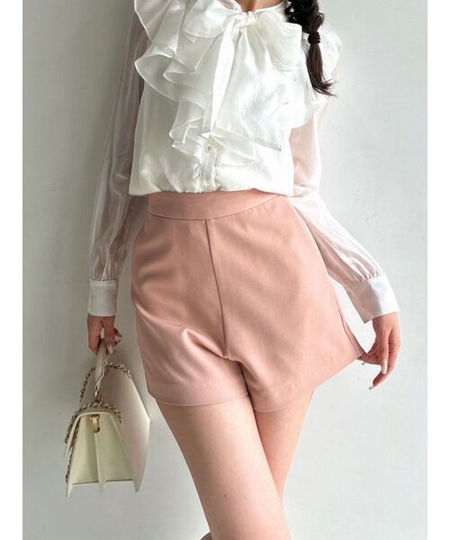 コンパクトなコーデに仕上げるショートパンツ▽デザイン▽1枚で美脚効果抜群のベーシックショートパンツ。シンプルなデザインなので1枚もっているとシーズンレスに着回しできるのが嬉しいポイント◎ハイウエストでウエストラインをしっかり引き締めてくれます。▽カラー▽白・ピンク・ネイビーの3色展開。▽スタイリング▽同色のジャケットと合わせればセットアップとして着用可能。どんなトップスとも相性が良く、着回しに富んだ1枚です。 ※着用画像はフラッシュの加減で実際の製品と色味等が異なる場合がございますので、生地のズームアップ画像をご確認ください。※ご利用の端末画面の設定により実際の商品と色味が異なる場合がございます。【商品特徴】透け感:なし伸縮性:なし生地の厚さ:普通サイズ感:普通裏地:ありポケット:あり(横)