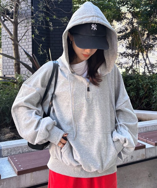 ●design 金属ファスナー付きのオーバーサイズのパーカーです。 ふんわりとしたボリュームスリーブに、ハーフジップで一癖あるデザインに。 ルーズなシルエットなので、ユニセックスで着るのもおすすめです。 ●fabric 着心地抜群の柔らかい薄手のスウェットカットソー素材。 程よい厚みなので春先まで活躍します。 ●style スウェットパンツを合わせてメンズライクコーデや タイトスカートを合わせてスポーツMIXまで ボトムを選ばず着用出来ます。 ハーフジップから白Tをのぞかせるのがこなれポイント◎ ●color ブラック、グレー ・・・・・・・・・・・・ 厚み:普通 伸縮性:あり 肌触り:普通 裏地:なし 透け感:なし ・・・・・・・・・・・・ ●ISOOK / アイスー 人気インフルエンサーの個性が詰まったセレクトアイテムや ブランドセレクトのトレンドライクなカジュアルアイテムを発信。 シンプルな日常のスタイリングに溶け込む、様々な個性あふれるブランドです。 ▼▼お気に入りの登録でお得な情報をゲット!▼▼ 商品のお気に入り登録で、再入荷の通知や、ラスト1点、セールのお得な通知を受け取ることができます。 ブランドのお気に入り登録で、新商品や再入荷など、ISOOKのお得な通知を受け取ることができます。 【ATTENTION】 ※アイロンの際はあて布の使用をおすすめいたします。 ※商品画像につきましては、なるべく実物に近づけて撮影いたしておりますが、 閲覧頂いておりますモニターによって、画像と実際の商品のお色に多少の差異が生じる場合が御座います。予めご了承下さい。 ※サイズにつきましては、すべて平台に平置きにし測定しております。 商品によっては実際の製品上がりサイズと1~3㎝程、多少誤差が生じる場合がございます。 予めご了承ください。