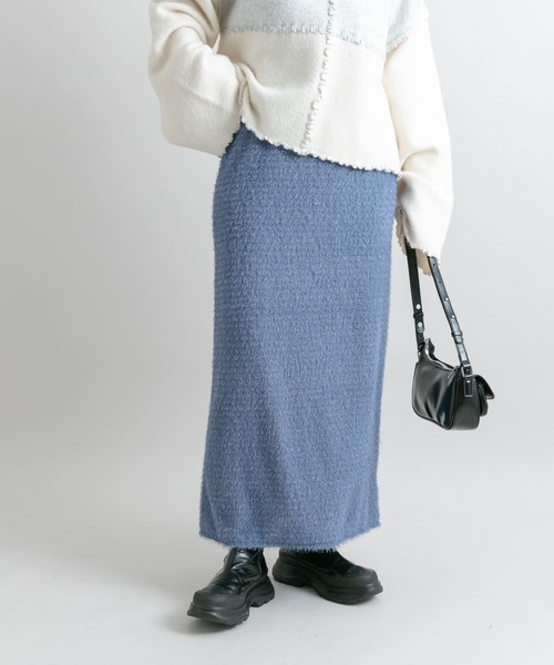 【カジュアルにもレディライクにもマッチする着映えスカート】 カジュアル~レディライクなスタイリングまで合わせやすい、ラメが入ったフェザースカート。ボリューミーな素材ながらすっきりとしたシルエットに仕上げたところや、足捌きが良いバックスリットも◎また、ウエストゴム仕様で幅広い体型の方に着ていただけます。ホリデーシーズンにもぴったりな1着です。 COORDINATE ゆったりとしたニットやスウェットを合わせたカジュアルなスタイリングや、ブラウスやシャツを合わせたきれいめスタイルと幅広く着回せます。バックスリットが入っているのでブーツを履きちらっと覗かせるのが◎ 【2024 Autumn/Winter】【24AW】 ※この商品は、素材や編み方の性質上、引っ掛け、引っ掛かりが起きやすい性質をもっています。お取り扱いにはご注意ください。 ※商品画像は、光の当たり具合やパソコンなどの閲覧環境により、実際の色味と異なって見える場合がございます。予めご了承ください。 ※商品の色味の目安は、商品単体の画像をご参照ください。 ▼お気に入り登録のおすすめ▼ お気に入り登録商品は、マイページにて現在の価格情報や在庫状況の確認が可能です。 お買い物リストの管理に是非ご利用下さい。 素材感 透け感 : なし 伸縮性 : あり 裏地 : あり 光沢 : ややあり ポケット : なし one
