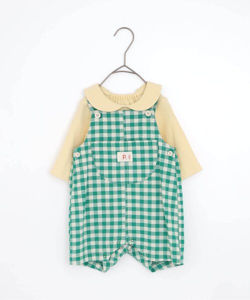 ゆったりしたシルエットと色使いが可愛いオーバーオールとトップスのセット。オーバーオールは股開きありの仕様。トップスもボタン無しで、襟がゴムになっており着脱簡単です。それぞれ単品使いもできて、コーディネート済みなのがうれしいポイント。普段着使いでのお出かけにもベビーギフトにもおすすめです。同じデザインのキッズアイテムやベビーのブルマ&ロンパスセットとリンクコーデも楽しめます。【取り扱い表示】40℃を上限に洗濯機で洗濯、デリケートアイテムモード、ネット使用、漂白剤を使用禁止、色物は同系の色と一緒に、洗濯後直ちに取出し、タンブル乾燥不可、日陰で吊り干し、低温でアイロン、商業ドライクリーニング不可40℃を上限に洗濯機で洗濯、漂白剤を使用禁止、色物は同系の色と一緒、洗濯後直ちに取出し、タンブル乾燥不可、日陰で吊り干し、低温でアイロン、商業ドライクリーニング不可【ご注意事項】この商品はカジュアルで、素朴な外観を強調する為、敢えて、紡織糸の太さが途中所々違う糸を使用しています。これは糸の特徴であり多少のネップ等は、自然な風合いを表現しています。他の製品では味わえない雰囲気をお楽しみ下さい。※商品により多少の誤差が生じる事がございます。あらかじめご了承下さい。※ご使用のパソコンやブラウザの環境により、実際の色とは多少異なる場合がございます。※モデル着用写真についてはイメージの為、実際の商品とカラーや仕様が異なる場合がございますので、商品画像をご覧ください。【 p.premier -ピードットプルミエ- 】着心地のよい素材細やかなシルエットまでこだわったデザインコーディネートしやすいけれど存在感のある色使いシンプルで、それでいて今っぽい男の子も女の子も気分で選べる何気ない1日から、とっておきの日までp.premierはママの「こんなこども服がほしい」をとくべつな想いを込めて届けます