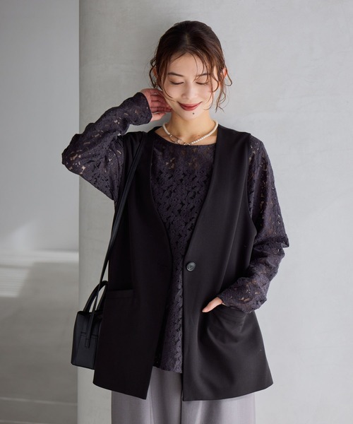 特別な日から普段使いまで楽しめる、シーンレスなベストが今年も登場ーーー【素材】無地は滑らかな肌触りの生地を使用。ほんのり光沢感があり、上品な印象です。メランジ柄はポリエステル素材を使用。どちらもしわになりにくいイージーケア素材です。【デザイン】Vネックのシンプルなベスト。フロントには嬉しい便利なポケット付きです◎前端を斜めにカットすることで、カッチリしすぎず抜け感のあるデザインに。入学式や卒業式などのフォーマルなシーンはもちろん、合わせるアイテム次第でデイリーにお使いいただけます。卒園式 卒業式 入園式 入学式 同窓会 謝恩会 結婚式フォーマル セレモニー オケージョン セットアップ セレモニーセットアップーーー【スタイリング】同じカラー・素材のパンツで合わせたセットアップでの着こなしがおすすめ◎また、カットソーやデニムと合わせたデイリー使いも素敵です。