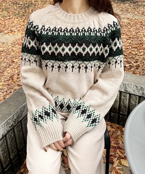 《ノルディックニットプルオーバー》 ノルディック柄の可愛いニットが登場! 目を惹くデザインがコーディネートのアクセントになってくれます♩ ボトムスには無地かデニム合わせがおすすめ◎ 取り入れるだけで冬っぽさ全開のスタイリングが完成♡ 少しゆるっとしたシルエットが可愛さ倍増です。 着用モデル 156cm/162cm 透け感 :なし 裏地 :なし 伸縮性 :あり 光沢感 : なし 生地の厚さ :厚め ・お使いのモニターの性能などによっては実際の色と多少見え方が違う場合がございます。 ・生地の在庫有無により生地を再生産する場合、生産する際の温度や湿度など諸条件により、多少色が異なってしまう場合がございます。 ・記載のサイズ詳細は平置きサイズの為、多少の誤差が生じる場合がございます。 サイズ感お色味等大体の参考までにご覧頂きますようお願い致します。 ・海外セレクト商品に関しましては、ものにより総丈5cm程度の差が生じる場合がございます。予めご了承頂いた上、ご購入いただきますようお願い致します。 【お買いものをよりお楽しみいただく為に!】 ▼商品のお気に入り登録(ハートマークをクリック) 完売カラーの再入荷通知や、ラスト1点の通知、セールの通知も受けることができます。 ▼ブランドのお気に入り登録 新商品や再入荷など、いち早くブランドのお得な情報を受け取ることができます。