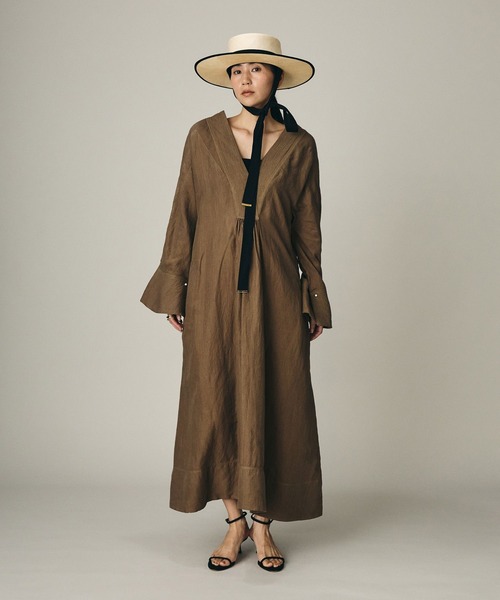 贅沢なパターンとステッチが際立つガーメントダイを施した名品ワンピース ーーー -Design- ・フロントもバックスタイルも大きく開いたVネック仕様で、サラッと一枚で着用可能なデザイン。 ・肩に入れたカッティングがポイントで、抜け感のあるドラマティックなシルエットを演出。 ・肩のずり落ちを防止するため、内側にインナーの紐を留めるスナップボタン付き。 ・贅沢に切り替えたパターンと随所に施されたステッチが、洗練された印象を与える。 ・素材とシルエットに拘る大人のデイリーウェアとして、一枚は持っておきたいカオスの名品。 -Fabric & Care- ・経糸にアルパカ混のペルーピマコットン、緯糸にフレンチリネンを使用したChaos定番の贅沢素材。 ・世界2大コットンと称される風合い豊かなペルーピマコットンをベースに、適度な密度でフランス綾を織り上げ。 ・生地自体にワッシャー仕上げを行うことで、品の良さを保ちながらヴィンテージライクな表情を実現。 ・カフェのコーヒーグラウンズやホワイトセージを使用した、独特の奥行きがある染め色が特徴。 ・上質な原料を使用しているため、カジュアルになりすぎずオールシーズン着用可能。 ▼NEW COLOR DEBUT 2026ssでは新色にコーヒー、ホワイトセージを追加しました。 ーーー ********************* 透け感:やや透ける(オフホワイト05で計測しています。) 伸縮性:なし(オフホワイト05で計測しています。) 生地の厚さ:普通(オフホワイト05で計測しています。) 裏地:なし ※こちらは参考情報となります。カラーにより多少の誤差がございます。 ********************* 【PICK UP REVIEW】 ※自社サイトにいただいたお客様のレビューです ■グレー|FREE|身長161cm|46-50kg 似合う形がわからず、ワンピースをずっと避けてきましたが、名品を信じて勇気を出しました。柔らかくぬくもりを感じる生地、繊細なステッチやボタンにとてもときめきました。自然素材ってこんなにも贅沢なんですね、着るだけでワクワク気分の上がるお洋服に久々に出会えました。 ■ログウッド|FREE|身長158cm|56-60kg ずっと欲しくてようやく手に入れました!適度な抜け感がとっても素敵です。オールシーズン着れるのも嬉しいです。着心地も最高。 ---------------------------------------------------------------------------- <価格改定のお知らせ> 2026年2月28日より原材料高騰のため価格改定をさせて頂きます。 ご了承下さいますよう、お願い申し上げます。 ---------------------------------------------------------------------------- 【Chaos(カオス)】 “カオス”の時代にあっても、自由かつインディペンデントな感性を大切にする大人の女性たちへ。素材やディティールにこだわったオリジナルと国内外で買い付けたユニークかつアーティな感覚のセレクトをミックスした発信をしています。 “大人の為の上質な日常着” ※商品の取り扱い方法につきましては、タグ等に記載されている「取り扱い上の注意」「洗濯表示」をご確認ください。 ※屋外での撮影画像は、光の当たり具合で色味が違って見える場合があります。あらかじめご了承ください。なお商品の色味は、スタジオ撮影の画像をご参照ください。 ....................≪INFORMATION≫...................... ▼商品のお気に入り登録をおすすめします▼ ♡をクリック!完売カラーの再入荷や、ラスト1点の通知、セールの際の通知を受ける事ができます。 ▼ ブランドのお気に入り登録 ▼ 新商品や再入荷など、ブランドのお得な情報をいち早く受ける事が出来ます。 こちらもぜひご登録ください。