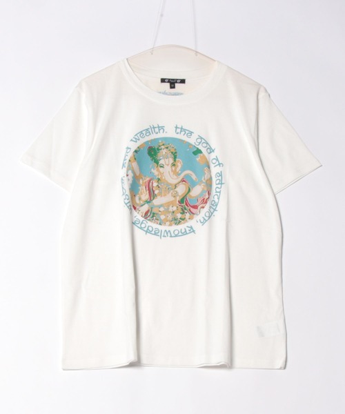 教育・知識・知恵・富の神とされるガネーシャをモチーフにした、カジュアルなTシャツ。綿素材でサラッと着られます。バックスタイルに“ganesha”のワンポイント刺繍入り。ユニセックスでご着用いただけます。※こちらの商品は1点1点職人による手作りとなります。その為、形や色合い・模様など若干異なる場合がございます。あらかじめご了承ください。※屋外での撮影画像は、光の当たり具合で色味・カラーが違って見える場合がございます。商品のカラーは、スタジオ撮影の画像をご参照ください。Amina Collection Co.,LTD.