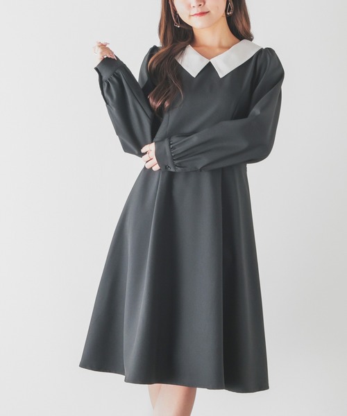 配色衿で上品に【デザイン】シックなカラーに映えるクラシカルな大きめの配色衿が上品なデザイン。低身長の方にもおすすめの長すぎない膝丈。自分にぴったりが見つかる、SS~LLまで揃った豊富なサイズ展開。【素材・機能】ロングシーズン使える、ストレッチの利いたツイル素材。スカート部分は透けが気にならない裏地付き。【スタイル】普段使いはもちろん、ちょっとしたお出掛けにも、幅広く活躍。※後ウエスト部分ゴムシャーリング・上下ゴム品番:559-51-9314