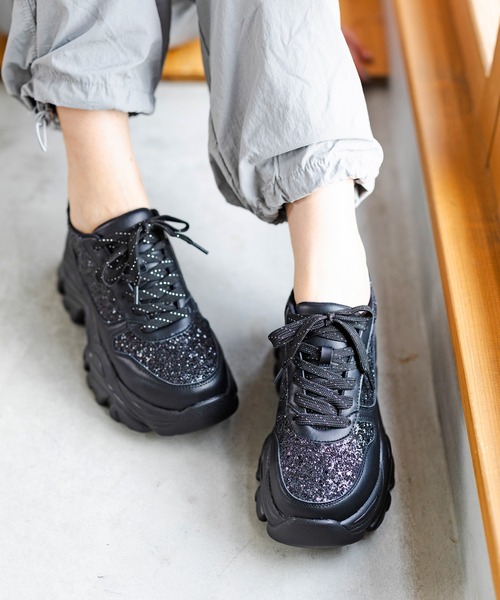 キラキラのグリッター素材が目を引く厚底スニーカー。 シンプルなワントーンでもラメ素材を使うことで存在感のある華やかな足元に。 ボリュームのある厚底ソールで歩きやすく疲れにくいのにしっかりスタイルアップできる優秀アイテムです 。 旅行やコンサートなどのレジャーシーン、通勤・通学などの普段使い、お出かけコーデになど様々なシーンで活躍してくれます。 パンツスタイルや丈の長いスカートやワンピースと合せたり、 ショート丈のボトムスにソックスを合せるコーデもおすすめです。 ◆お気に入り登録がおすすめ! ♥をクリックしてセールや再入荷、ラスト1点通知など、お買い得な情報を受けとる事ができます。 【attagirl】ブランドのお気に入り登録も一緒に追加するとお得なニュースを配信します♪ ◆カラー展開 ブラック・ホワイト・ピンク ◆モデル試着コメント◆ モデル:165cm 23.5cm 普段M/Lサイズで Mサイズサンプル を着用 厚底ですが重くないので歩きやすく、長時間の外出でも疲れにくいです。アッパーも足当たりの良い素材で靴擦れすることなく快適な履き心地です。 ◆注意点 ※着用感・サイズ感は個人差がございます。 ※撮影時のライティングやご覧になっている画面の環境などにより、実際の商品と色味が異なって見える場合がございます。