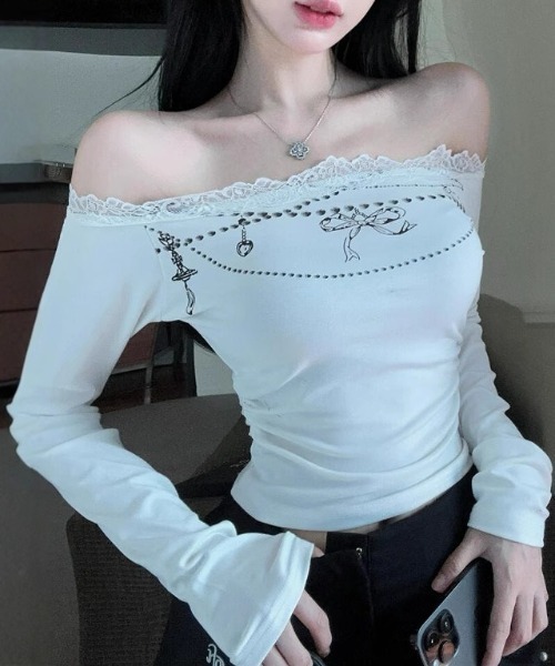 ◆DETAIL◇トレンドのY2Kコーデやグランジスタイルを叶えるジュエリープリントオフショルレースロンT! 一枚着るだけで今旬な肩見せコーデが完成し、顔回りもスッキリ見せてくれます。 適度なフィット感がバランスよく仕上がっており、女性らしいボディラインを強調してくれます。 ウエストがシェイプしたシルエットでスタイルアップできる設計に。 ハイウエストデニム合わせがトレンド感抜群のコーデに仕上がりします。 春先は一枚着はもちろん、レースキャミをチラ見せしても良し、 秋冬はレザーアイテムやMA-1のインナーとして大活躍します! ◆POINT◇ ・Y2K ・韓国ファッション ・韓国ストリート ・韓国ガーリー ・ガーリー ・グランジファッション ・タイトシルエット ・タイトフィット ・スタイルアップ ・長袖 ・ロンT ・ピチT ・甘辛ミックス ・カジュアルガーリー ・バレエコア ・モノトーン ・無彩色 ・カジュアル ・モード ・プリントT ・リボン ・ジュエリープリント ・レース ・オフショルダー ・ロングスリーブ ・ワンショル ・ワンショルダー ・春服 ・秋服 ----------------------------------------- 【サイズ】 M/L 【2色展開】 ブラック/ホワイト ----------------------------------------- ※着用身長によって画像イメージと異なる場合があります。 ※撮影環境により、実際のカラー、形状、デザイン等多少異なる場合がございます。 ※フロントプリントは、物によってデザインが多少異なる場合がございます。 《 お知らせ 》 ▼商品のお気に入り登録 お気に入りアイテムの値下げ・再入荷・在庫1点などの通知を受け取ることができます。 ▼ブランドのお気に入り登録 新商品や再入荷、セール、クーポン配布などお得な情報を受け取ることができます。 是非、お気に入り登録してみてください♡ ※他のキャンペーンにより、期間中に価格が変動する場合があります。※セールは予告なく終了させていただく場合もあります。