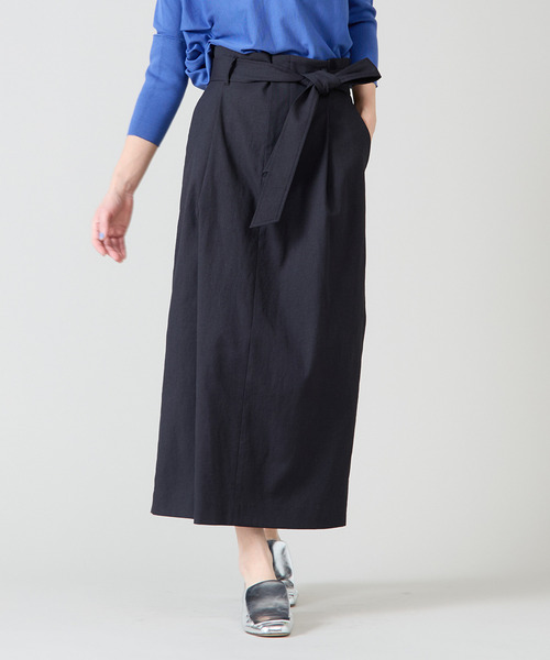 センターにボックスタックを入れたタイトシルエットのスカート。リサイクル原料を使用したポリエステルのツイル素材でソフトで膨らみがあり適度なナチュラル感が特徴のイージーケアアイテム。ベルトの片面に配色のグログラン素材を使ったバイカラーデザインでベルトはどちらが表でも使用頂けます。ウエスト後ろはゴム仕様です。 ※サンプル撮影のため実際の仕様と異なる場合がございます。 予めご了承ください。 ■透け感 なし ■伸縮性 ややあり ■光沢感 なし ■裏地 総裏 ■生地の厚さ 普通