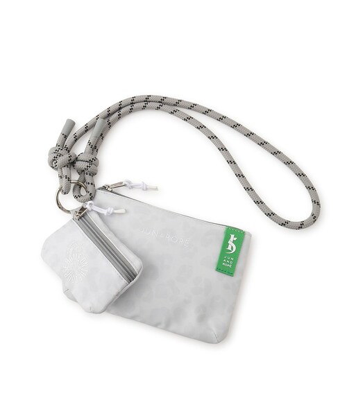 軽量のポリエステル素材にトーナルカラーのアニマルプリントを施した2ポケットサコッシュ。 大小2つのポーチとストラップは、シーンに応じて取り外しも可能。 鍵やスマホなど、ちょっとした小物を収納してくれる便利なサイズ感です。 アクセントには15周年を記念したオリジナルピスネームを使用。 ラウンドはもちろん普段使いにも便利なユーティリティーアイテム。 ポーチ大:(幅)20cm (高さ)13cm ポーチ小:(幅)11cm(高さ)8cm ショルダー長さ:100cm <同シリーズアイテム> ・アニマルプリントボストンバッグ(品番:ERX25000) ・アニマルプリントカートバッグ(品番:ERX25010) ・アニマルプリントキャディバッグ(品番:ERX15000) ※実際の商品はお客様のお使いの端末や閲覧環境により、写真と実物の色味や質感が多少異なって見える場合がございます。 予めご了承ください。 ※画像の商品はサンプルです。実際の商品とは仕様・加工・サイズ・素材が若干異なる場合がございます。 JUN&ROPE’(ジュンアンドロペ) 2つのゴルフコース「ジュンクラシックカントリークラブ」「ロペ倶楽部」を有するJUNからデビューしたゴルフウエアブランド。