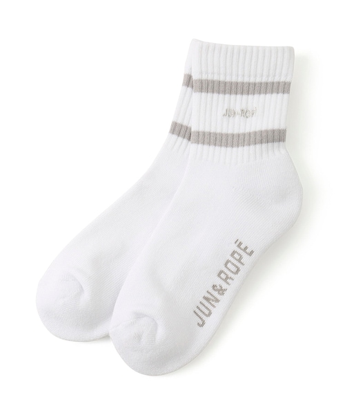 【デザイン】 程よいトレンド感のある丈感が人気のショートソックス。 ふくらはぎをきれいに見せてくれる長すぎない丈感にこだわったデザイン。 ライン使いがスポーティでシンプルリッチな印象に。 【素材】 柔らかい肌触りで軽く、動きやすさもバツグンな素材感。 足底はパイル仕様でクッション性にも優れています。 ドライで爽やかな風合いが特徴の「dralon(ドラロン)」を使用。 抗菌防臭機能素材でプレーを快適サポート。 ※実際の商品はお客様のお使いの端末や閲覧環境により、写真と実物の色味や質感が多少異なって見える場合がございます。予めご了承ください。 ※画像の商品はサンプルです。実際の商品とは仕様・加工・サイズ・素材が若干異なる場合がございます。 JUN&ROPE’(ジュンアンドロペ) 2つのゴルフコース「ジュンクラシックカントリークラブ」「ロペ倶楽部」を有するJUNがお届けするゴルフウェアブランド。