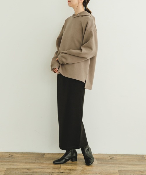 シンプルでミニマルなデザインが特徴のセットアップ。ゆったりとしたトップスが程よい抜け感を演出し、タイトスカートが全体をスッキリとまとめています。シンプルなデザインでトップスとスカートそれぞれ単品使いもでき、着回しの幅が広がるのも嬉しいポイント。 【2024 Autumn/Winter】【24AW】 総重量 : 約780g [スカート] FREE : ウエスト62~80cm / ヒップ88cm / スカート丈86cm / 長さ(スリット)29.5cm ※商品画像は、光の当たり具合やパソコンなどの閲覧環境により、実際の色味と異なって見える場合がございます。予めご了承ください。 ※商品の色味の目安は、商品単体の画像をご参照ください。 ▼お気に入り登録のおすすめ▼ お気に入り登録商品は、マイページにて現在の価格情報や在庫状況の確認が可能です。 お買い物リストの管理に是非ご利用下さい。 素材感 透け感 : なし 伸縮性 : あり 裏地 : なし 光沢 : なし ポケット : あり(スカートのみ)
