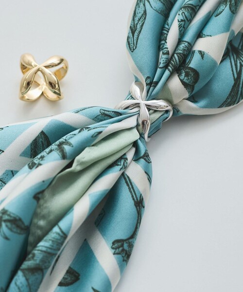 ◆2025春夏◆ 【デザイン・シルエット】 シンプルながらぷりんとした曲線が女性らしいスカーフリング。 まるで蝶のように上品な他にはないオリジナルモデル。 <POINT> 使用用途が広く、スカーフはもちろんボウタイブラウスにもお使いいただけます。 ・スカーフを畳んで両先端をリングの真ん中に通すだけで留めていただけます。 ・スカーフを畳んで両先端をリングの真ん中に通し、リングの両端からスカーフを引っ張るとリボンの形で留めて頂けます。(70cmスカーフ推奨) ・90cmのスカーフを使用しホルターネックの留め具としてもお使い頂けます。 ・ボウタイブラウスのタイ先端をリングの真ん中に通し、リングの両端からスカーフを引っ張るとリボンの形で留めて頂けます。 【カラー】 ゴールドとシルバーの2色展開。 ※画像の商品はサンプルです。 実際の商品と仕様、加工、サイズが若干異なる場合がございます。