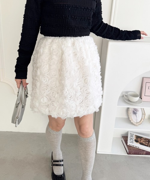 立体的なローズチュールが主役のミニスカート♡ ▼POINT ・チュールをたっぷり使用したフラワーモチーフが可愛いミニスカート ・ローズモチーフがフェミニンで華やかな印象に ・ウエストゴムでストレスフリーに着用できるのも嬉しい ・履くだけで目を惹くデコラティブな主役アイテム ・着映えするのでテーマパークなどイベントにもぴったり ▼STYLING ボウタイブラウスやカーディガンと合わせてガーリーな着こなしがおすすめ♡ スウェットやロンT合わせで女の子らしいカジュアルMIXスタイルに着こなすのも◎ デニムやレースパンツとのレイヤードスタイルも今っぽく仕上がります。 【Loueme...♡】 ”Loulou”(可愛い子) + "bohéme"(自由奔放) 造語から”Louéme(ルエム)”が誕生しました。 自由気ままに、おしゃれを楽しみ 自分のため、大切な誰かのために いつだってかわいくいたい女の子のためのブランドです。 ※ご覧のモニター・撮影環境により実際の商品と多少色味が異なって見える場合がございます。 予めご了承をお願いいたします。 【お買い物をよりお楽しみいただく為に!】 ▼商品のお気に入り登録♡ ハートをクリック! 完売カラーの再入荷や、ラスト1点の通知、セールの際の通知を受ける事ができます。 ▼ブランドのお気に入り登録♡ 新商品や再入荷など、いち早くブランドのお得な情報を受け取ることができます。