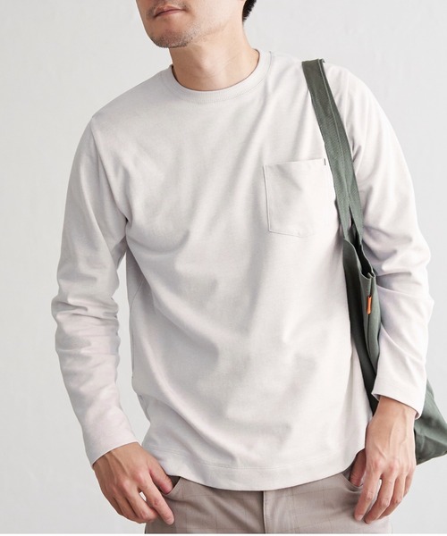 何枚あっても困らないシンプルな長袖Tシャツ。カジュアルコーデからきれい目ジャケットのインナーとしても活躍します。【素材】しっかりとしたダブルフェイス素材。【デザイン】しっかりとしたダブルフェイス素材を用いた長袖Tシャツです。サイズ感は着回しのきくレギュラーサイズ。【ikkaポイント】シンプルなデザインながらポケットの端の配色ステッチがワンポイント。昨年からの進化ポイントとして、襟を柄編みのリブ素材に変更しております。[洗濯方法]洗濯の際はネットを使用してください