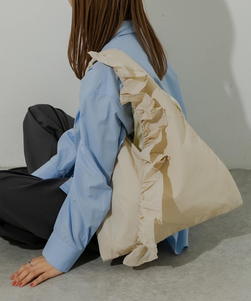 【大きめフリルが大人カワイイ】 ●ボリュームあるフリルでスタイリングの主役に ●たっぷり入るサイズで収納力◎ ●サブバッグとして持ち運ぶのにもオススメ シンプルなトートバッグに、フリルをあしらった印象的なデザイン。 甘い雰囲気になりすぎず、カジュアルなスタイリングの外しとしてもオススメです。 モノトーンの2色展開なので大人にも取り入れやすいのもポイント。 シンプルなスタイリングのアクセントに最適なアイテムです。 【2025 Spring/Summer】【25SS】 ※A4サイズ収納可能 総重量 : 約85g ※商品画像は、光の当たり具合やパソコンなどの閲覧環境により、実際の色味と異なって見える場合がございます。予めご了承ください。 ※商品の色味の目安は、商品単体の画像をご参照ください。 ▼お気に入り登録のおすすめ▼ お気に入り登録商品は、マイページにて現在の価格情報や在庫状況の確認が可能です。 お買い物リストの管理に是非ご利用ください。 -