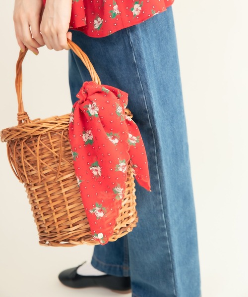 華やかな花柄とスカラップの縁どりが印象的なスカーフ。1950年代のヨーロッパテキスタイルを参考にオリジナルでお作りし、特別感のある生地に仕上がりました。シャープなお花と細かな手描き風のラインで描かれた小花柄が散りばめられ、ブランドらしいレトロな雰囲気のテキスタイルです。素材はシャリみとやや透け感のあるポリエステル100%のジョーゼットを使用。程よくハリ感があり、シワになりづらい素材なので、気兼ねなくデイリー使い出来るのも嬉しいポイント。縁どられているスカラップは職人さんが一点一点刺繡をかけて作られています。ブランドネームが刻まれたコインネームを付けたのもさり気ないこだわりです。頭に巻いたり、バッグに結んだり、インテリアの一部として取り入れるなど使い方次第で、様々なシーンで活躍してくれます。同シリーズで裾フリルスカート(1101SK001251)、キャミブラウス(1101BL001251)もご用意しております。-----------------------透け感:ややあり伸縮性:なし光沢感:なし-----------------------【素材の特性・お取り扱いの注意】・取り扱いの注意については取り扱い表示をよくご確認の上、着用をお願い致します。・この製品は、素材の特性上汗や雨等でぬれた時、強くこすれた場合等、色落ちし、他の衣料に移染することが有ります。また、単独洗いでも水洗いする事によって、淡い色の部分に色移りしてしまう可能性があります。ぬれたままでの10分以上放置しない様にご注意ください。※撮影画像は、光の当たり具合やモニターの環境により色味が違って見える場合があります。あらかじめご了承ください。※着用の商品はサンプルで撮影しております。お届けする実際の商品と仕様、加工、サイズが若干異なる場合がございます。