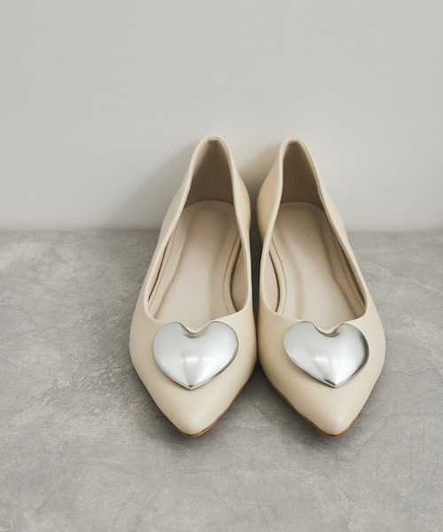 一目ぼれ!ハートが主役のパンプス◆2025春夏◆【デザイン・シルエット】ハートはメタル素材にすることで大人も履けるデザインに。履き口はさり気ないハートカットで女性らしく柔らかいカットラインにしました。楕円のデザインローヒールを採用しちょっとした遊び心も!<POINT>・柔らかいアッパー。・パーツの位置は前目に設定しパンツの裾からちらっと覗きやすいように調整しました。・楕円のローヒールはしっかりと接地面があるので安定感があります。・ヒールがあることでぺたんこシューズよりも疲れにくいです。【素材】可愛さの中にも高級感じられる合皮を採用。主張し過ぎない細やかなシボ感です。【カラー】取り入れやすいブラックとアイボリーの2色展開。【おすすめのスタイリング】デニムやワイドパンツと合わせて頂くのおすすめです。 ※一部の箱に配送の際についてしまった、キズ、へこみなどがある場合がございますが、商品に問題はございません。 ※画像の商品はサンプルです。 実際の商品と仕様、加工、サイズが若干異なる場合がございます。