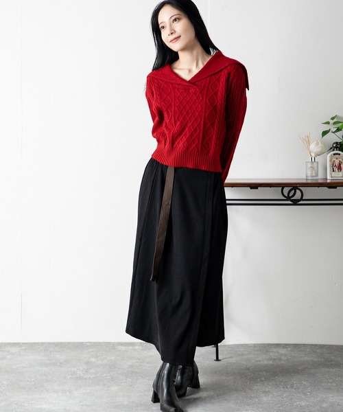 上品カジュアルなセットアップスタイル ニット、スカート、ベルトがセットになった、これだけでコーデが完成する便利なアイテム。 トップスのショートケーブルニットは、ヴィンテージ感漂う洗練されたデザインが特徴。 スカートはややとろみのある素材で、女性らしい柔らかな動きを演出します。 付属のベルトがウエストを引き締め、スタイルアップ効果をプラス。 4色のニットと2色のスカートで、全8パターンの組み合わせ! 単品でも着回しが効く万能セットで、おしゃれに差をつけましょう。 ◆ おすすめポイント ☆ ショートニットでスタイルアップ ショート丈のケーブルニットは、ウエスト位置を高く見せる効果でスタイルアップが叶います。 どんなボトムスにも合わせやすい万能デザイン。 ☆ スカートの切り替えで足長効果 スカートの絶妙な切り替え位置が、脚を長く見せるバランス感を演出。 とろみ素材で上品な印象もアップ。 ☆ セットで楽しめるコスパの良さ 3点セットでこの価格はお得感たっぷり。 トップスもスカートも単品で使えるので、コーディネートの幅が広がります。 ◆ 大人カジュアルなコーディネート例 ☆ カジュアル×上品なモノトーン オフホワイトニット × ブラックスカート × ブラウンベルト 白と黒のモノトーンに、ベルトでアクセントをつけたシンプルかつ上品なコーデ。 デイリーからオフィスカジュアルまで対応可能。 ☆ レディな印象の秋色コーデ ブラウンニット × ベージュスカート × ブラウンベルト ブラウンとベージュの同系色コーデに、ブラウンベルトで色のコントラストを楽しむ女性らしいスタイル。 アクセサリーで華やかさをプラス。 ☆ 華やかさ際立つ差し色コーデ レッドニット × ブラックスカート × ブラウンベルト ビビッドなレッドニットが主役。 ブラックスカートで引き締めつつ、カジュアルな雰囲気をキープ。 ◆ シーン別の着回し提案 ☆ 通勤スタイル オフホワイトニット × ベージュスカート × ブラウンベルト ジャケットを羽織るだけで即オフィス仕様に。 品よくまとまるので、会議やプレゼンにも安心。 ☆ 休日のお出かけ イエローニット × ブラックスカート × ブラウンベルト 明るいイエローが気分を上げるコーデ。 スニーカーで足元をカジュアルにすれば、ショッピングや公園デートにぴったり。 ☆ ディナーや特別なシーンに ブラウンニット × ベージュスカート × ブラウンベルト エレガントなカラーリングで上品な印象。 ヒールとクラッチバッグを合わせて大人っぽいコーデに仕上げます。 ◆ fabric 透け感:なし 伸縮性:あり ◆ model size 身長 157cm このセットがあれば、どんなシーンでも大活躍間違いなし! コーデに迷わないセット販売で、簡単おしゃれを楽しみましょう。 #ヴィンテージモード #セットアップ #秋冬コーデ #スタイルアップ #お得感 ≪お気に入り登録≫ 再入荷や、セール情報などお知らせを受け取ることができます! ≪Instagram:@millioncarats_official≫ 新作やセールなど最新情報をチェック!
