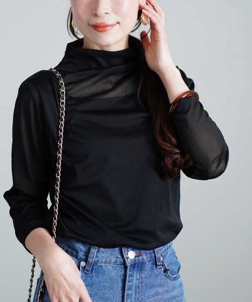 【アイテム】着回し自由自在な心躍るシアーインナートップスです。気になるところは隠して程よい肌見せが美しいデザイン。着丈はお尻にかかるくらいの丈です。長袖です。丁寧な製法の日本製トップスは安心安全のクオリティ。ブラック・ピンクの2色展開です。エレガントなコーディネートに仕上がります。【シーン】お出かけ、旅行、ランチ、ディナー、女子会、デートに活躍します。【体型カバー】ゆとりのある身幅が上半身ラインをカバーしてくれます。※お使いのディスプレイにより色味が異なって見える場合がございます。ご了承の上お買い求め下さい。※他のキャンペーンにより、期間中に価格が変動する場合があります。☆『お気に入り登録』でお得な情報がいっぱい☆■「商品のお気に入り登録」で再入荷通知や、在庫残り僅かの通知、セール通知も受け取ることができます。■「ブランドのお気に入り登録」で新商品や再入荷など、お得な情報を受け取ることができます!是非ご登録くださいね☆